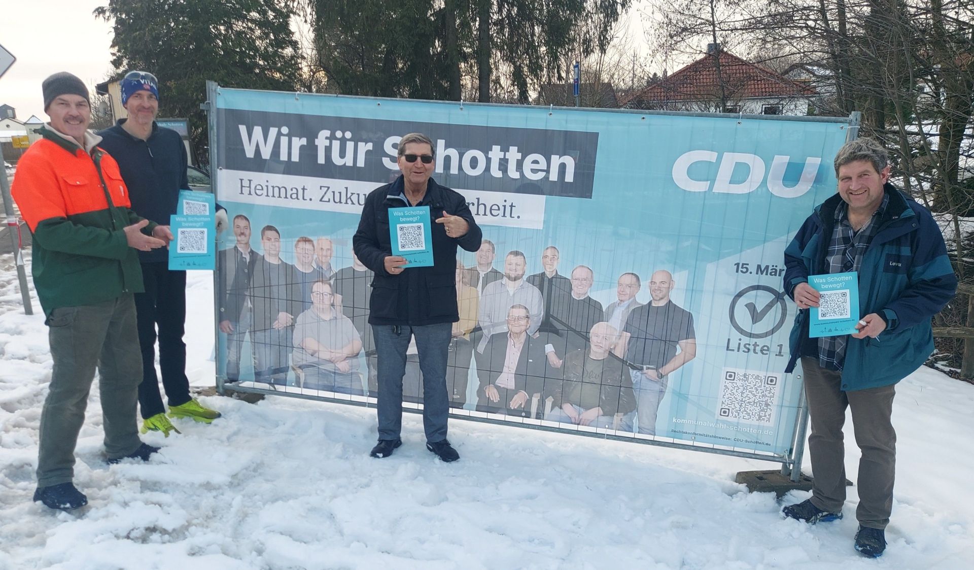„Wir für Schotten!“ – unter diesem Motto stellt die CDU der Großgemeinde ihre Kandidatinnen und Kandidaten für die Stadtverordnetenversammlung anlässlich der Kommunalwahlen am 15. März vor. QR-Codes, neues Instagram-Profil und eine eigens eingerichtete Kommunalwahl-Internetseite: Die CDU in Schotten wirbt modern und digital um die Gunst der Wählerinnen und Wähler und beweist damit, dass sie die Zukunft im Blick hat.